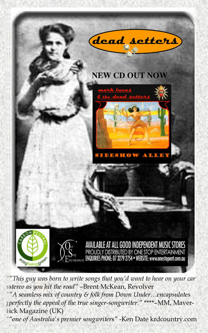 2007 has got off to a cracking start in the Dead Setters camp with a very successful string of dates at Maguire’s during the Tamworth Fest as well as various other appearances around the town. As a largely non-touring act we really look forward to these festival events as they give the band a chance to really get our teeth into the material and stretch a little. Sadly these were Glenn’s last dates with the Dead Setters, at least for the foreseeable future, as he is moving on to embrace new challenges. After working with him for nearly 14 years from the early Parwills days and through 4 albums, he will leave a sizeable gap and will be a hard act to follow, however we are pleased to say that we are making progress with this and have Bruce Reid (guitar/lap steel- The Catholics) with us at the next Stag date.